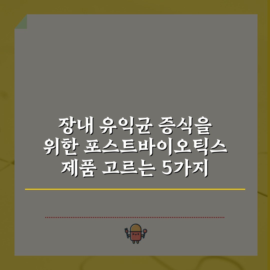 장내 유익균 증식을 위한 포스트바이오틱스 제품 고르는 5가지 기준 2026년 03월 08일 작성자: 인포 장내 유익균 증식을 위한 포스트바이오틱스 제품 선택 시 고려해야 할 5가지 기준을 알아보세요. 건강한 장을 위한 필수 팁!