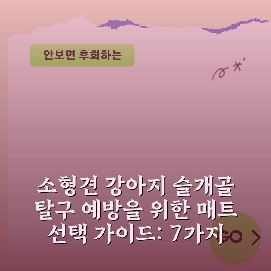 소형견 강아지의 슬개골 탈구를 예방하기 위한 매트 선택 가이드를 소개합니다. 7가지 팁으로 안전하고 편안한 환경을 만들어보세요!