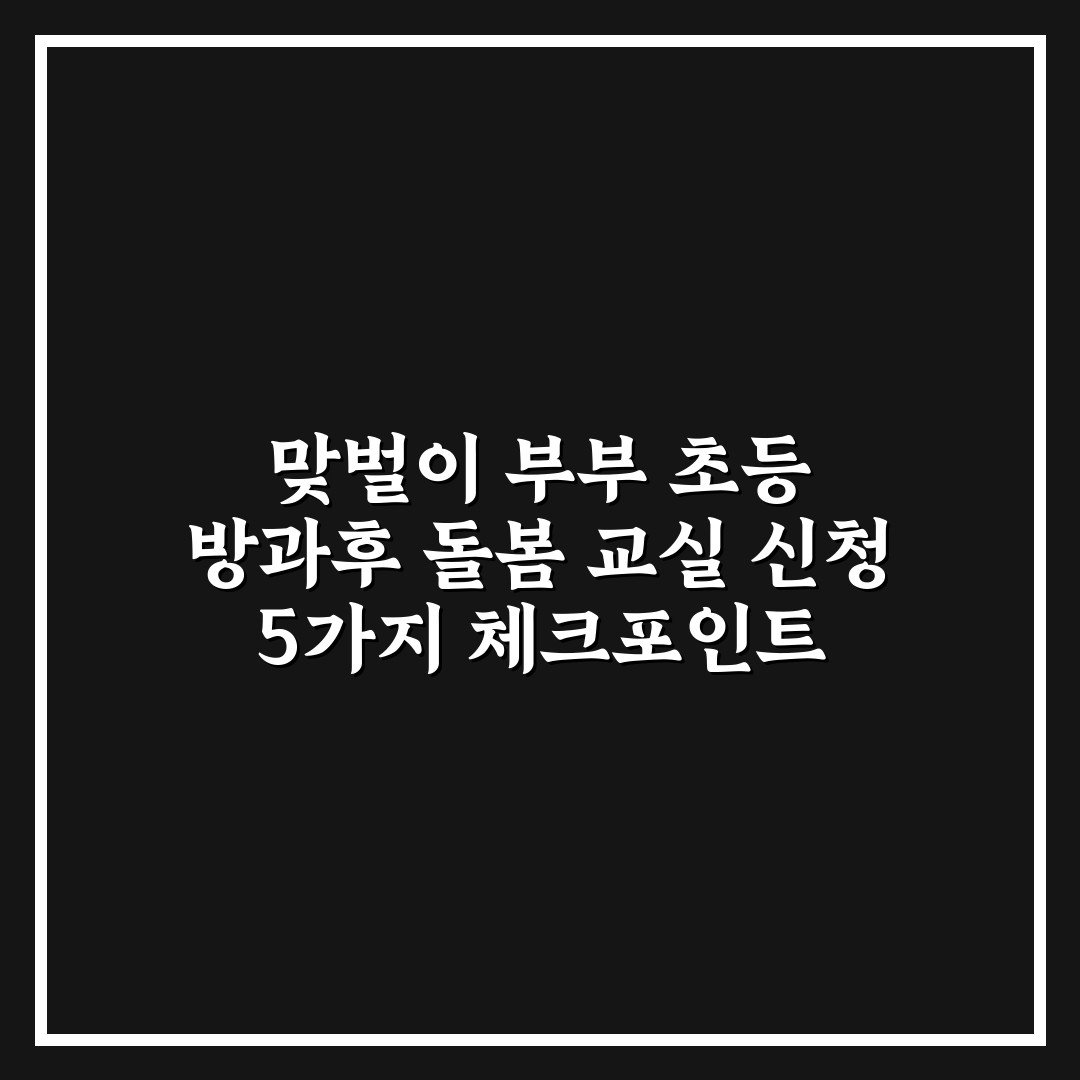 맞벌이 부부 초등 방과후 돌봄 교실 신청 5가지 체크포인트 총정리 2026년 03월 21일 작성자: 인포 맞벌이 부부 초등 방과후 돌봄 교실 신청 시 꼭 확인해야 할 5가지 핵심 포인트와 절차를 한눈에 정리해 쉽게 이해할 수 있습니다