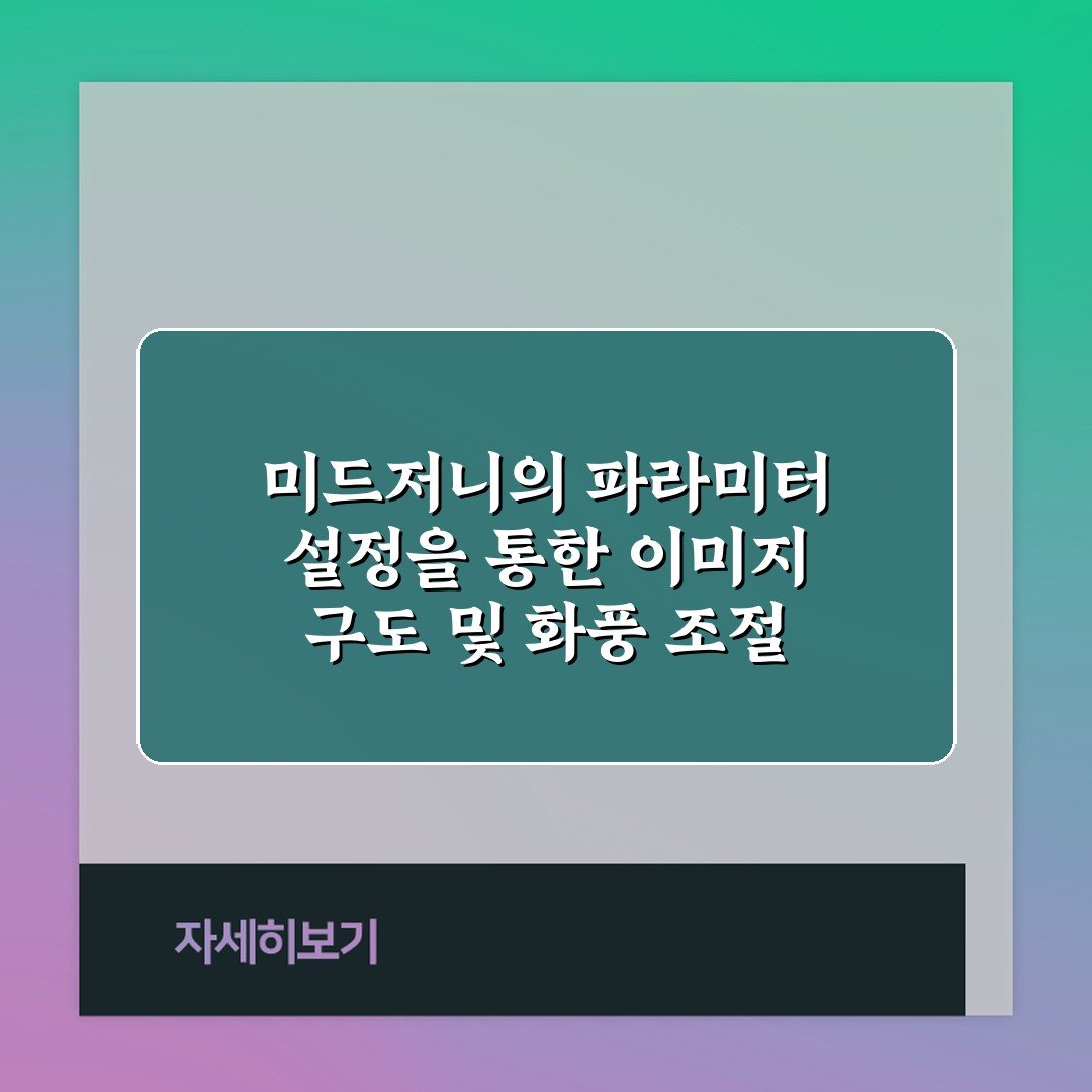 미드저니의 파라미터 설정을 통한 이미지 구도 및 화풍 조절 5가지 비법 2026년 03월 10일 작성자: 인포 미드저니의 파라미터 설정을 활용하여 이미지 구도와 화풍을 조절하는 5가지 비법을 소개합니다. 창의적인 작품을 만들고 싶다면 클릭하세요!