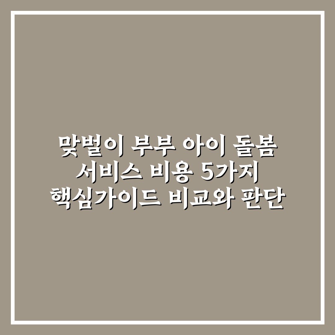맞벌이 부부 아이 돌봄 서비스 비용 5가지 핵심가이드 비교와 판단