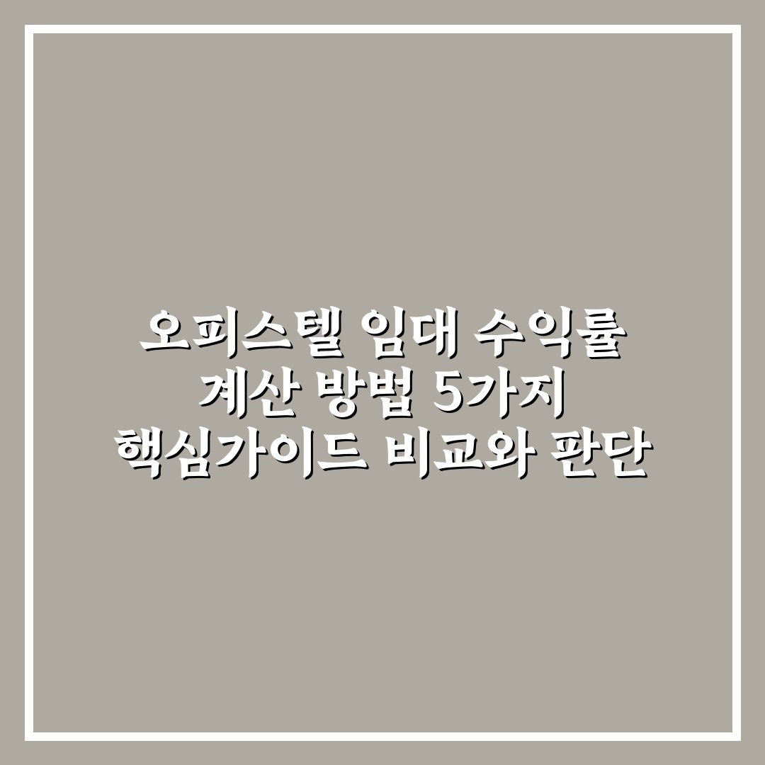 오피스텔 임대 수익률 계산 방법 5가지 핵심가이드 비교와 판단 기준 2026년 04월 18일 작성자: 인포 오피스텔 임대 수익률 계산 방법과 5가지 핵심 가이드를 비교해 효율적인 투자 판단 기준을 제공합니다