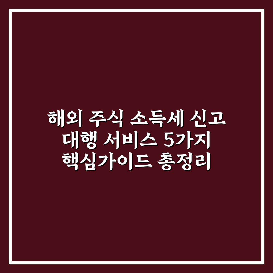 해외 주식 소득세 신고 대행 서비스 5가지 핵심가이드 총정리 2026년 03월 27일 작성자: 인포 해외 주식 소득세 신고 대행 서비스 선택 시 고려해야 할 핵심 가이드와 주요 정보들을 한눈에 정리해 효율적인 신고를 도와드립니다