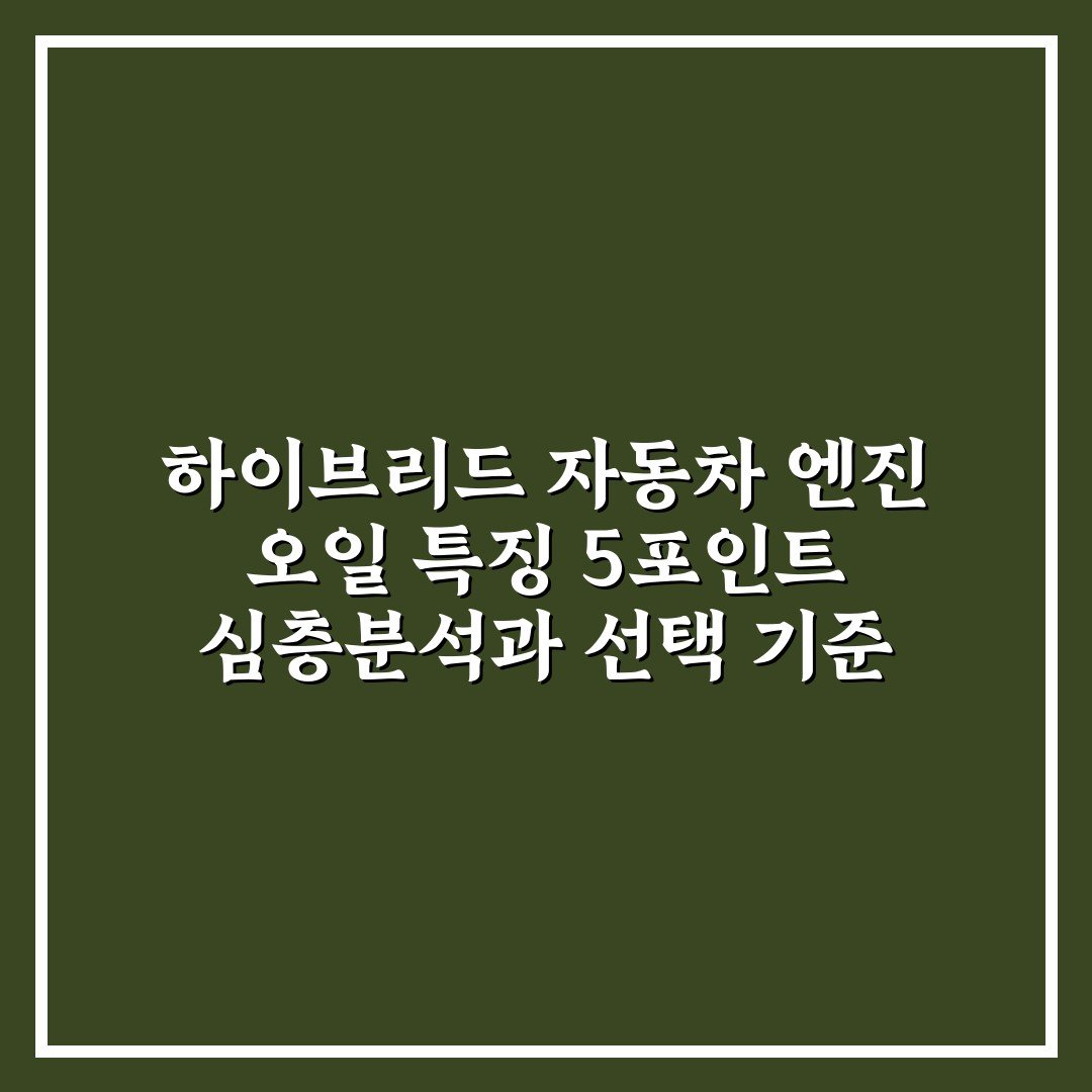 하이브리드 자동차 엔진 오일 특징 5포인트 심층분석과 선택 기준 2026년 04월 01일 작성자: 인포 하이브리드 자동차 엔진 오일 특징과 선택 기준을 5가지 핵심 포인트로 분석해 최적의 오일을 고르는 방법을 제공합니다