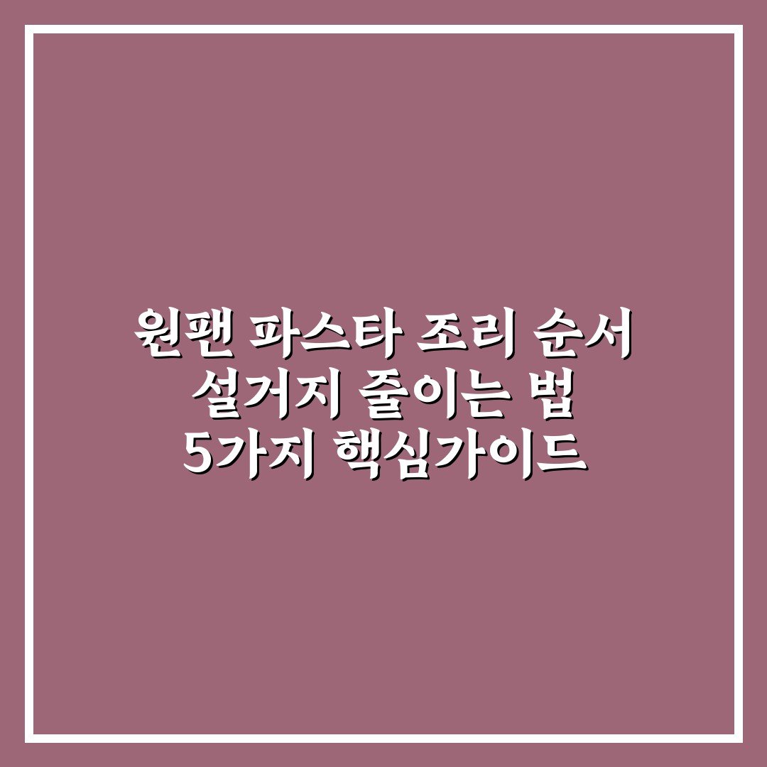 원팬 파스타 조리 순서 설거지 줄이는 법 5가지 핵심가이드