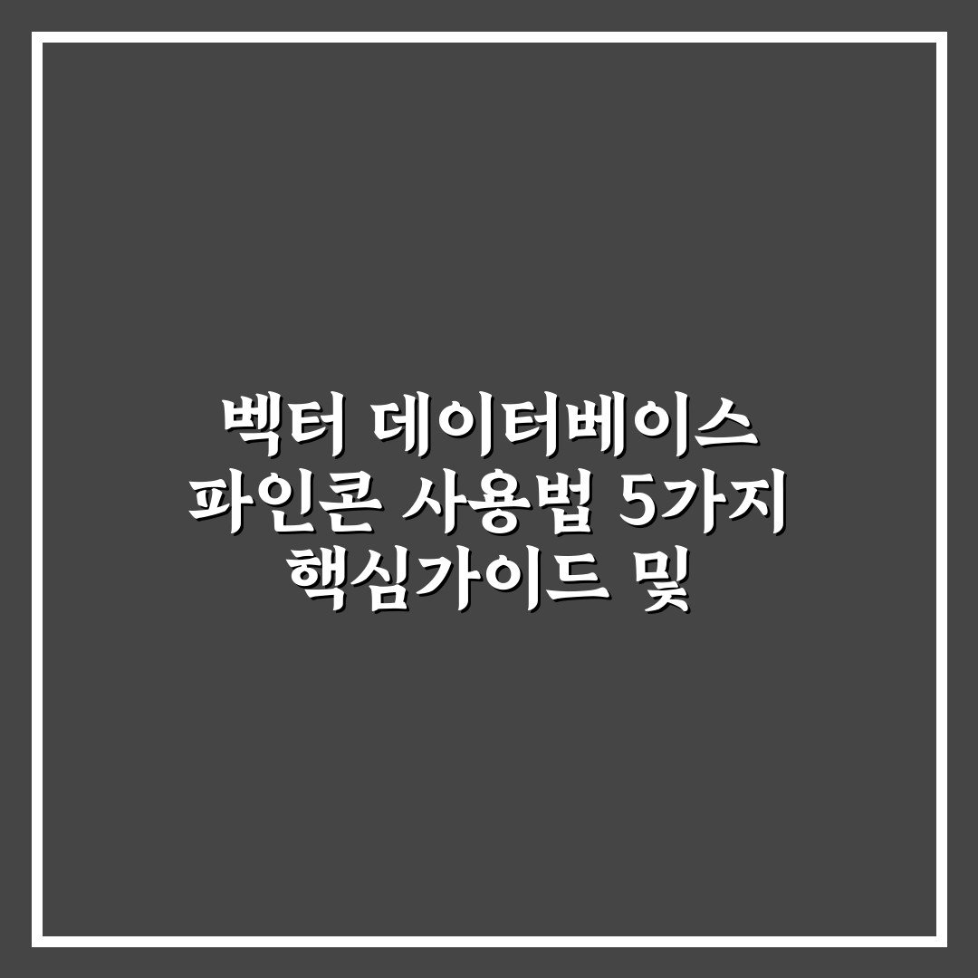 벡터 데이터베이스 파인콘 사용법을 쉽고 효과적으로 익히기 위한 5가지 핵심 가이드와 실용적인 체크포인트를 제공합니다.