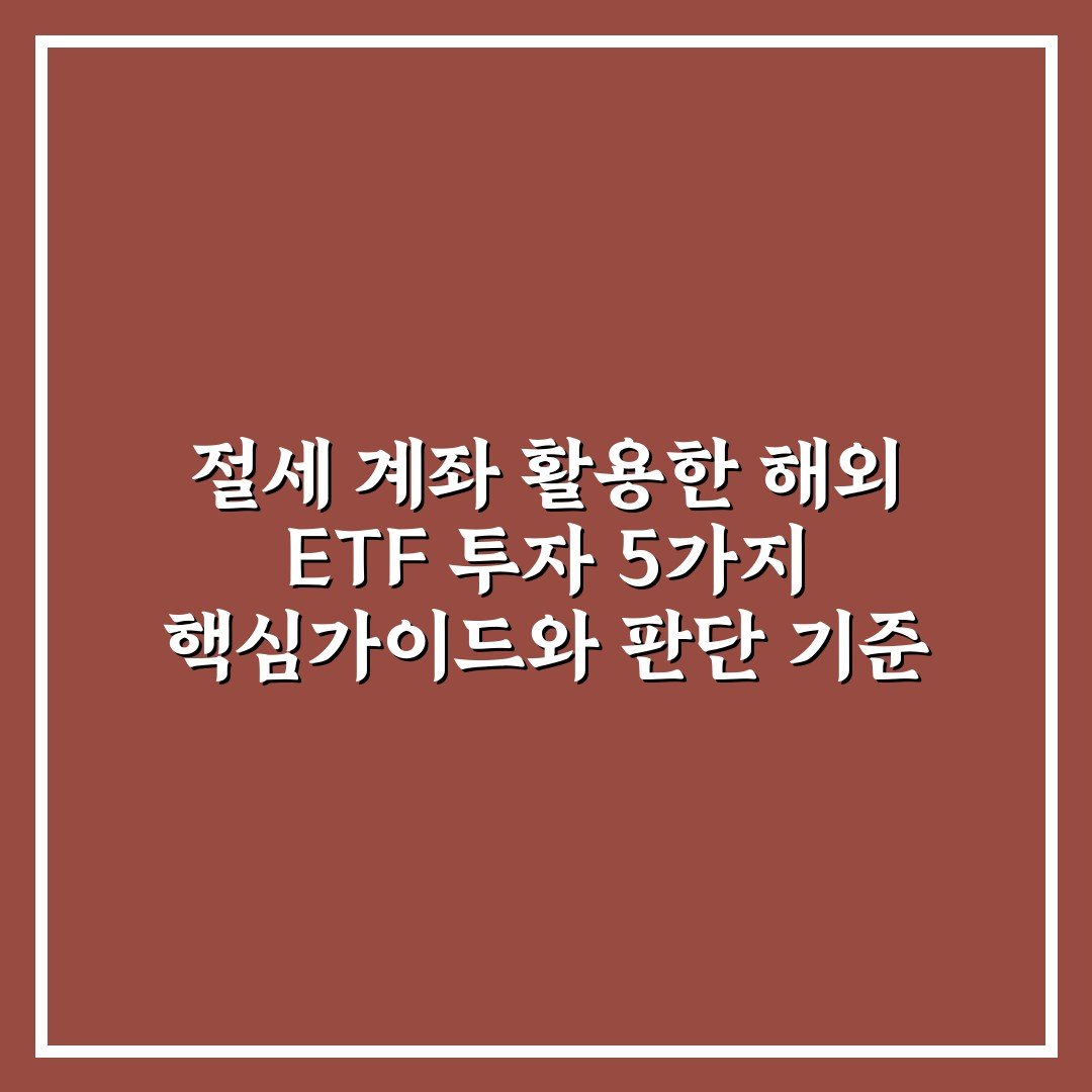 • 절세 계좌 활용한 해외 ETF 투자 5가지 핵심가이드와 판단 기준