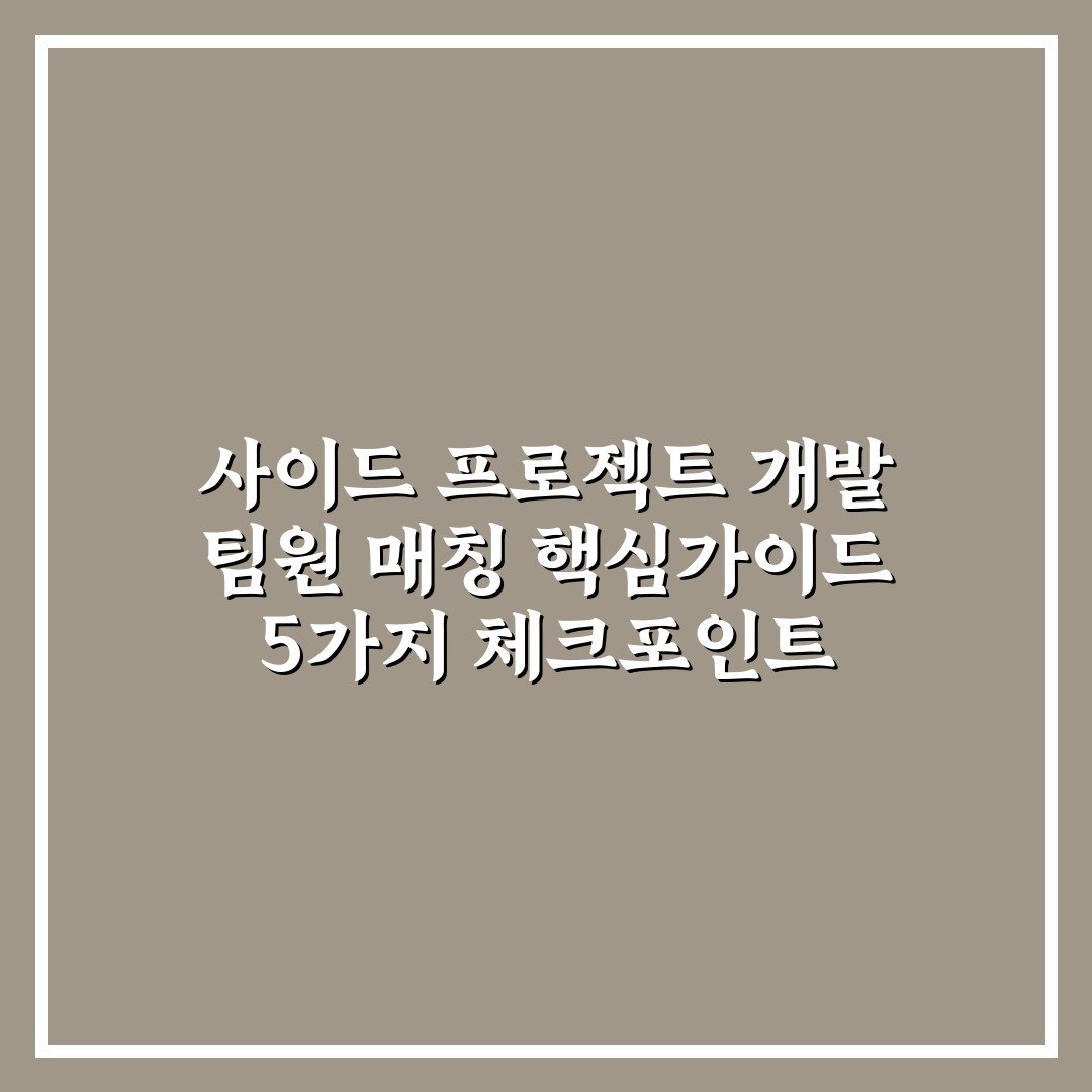 사이드 프로젝트 개발 팀원 매칭 핵심가이드 5가지 체크포인트 2026년 03월 19일 작성자: 인포 사이드 프로젝트 개발 팀원 매칭에 꼭 필요한 5가지 핵심 체크포인트를 통해 효율적인 협업과 성공적인 결과를 만드는 방법을 안내합니다