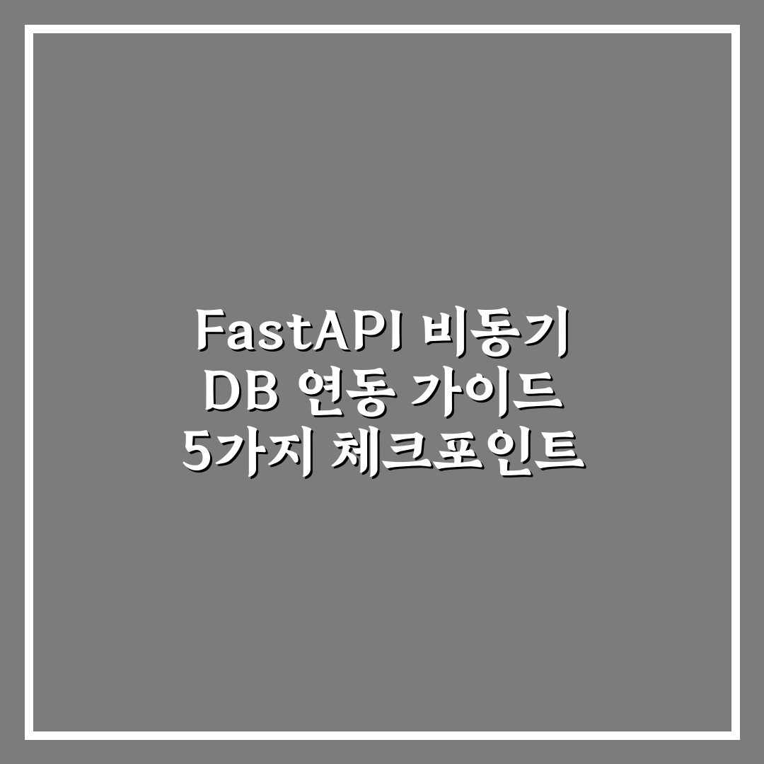 FastAPI 비동기 DB 연동 가이드 5가지 체크포인트 총정리 2026년 04월 05일 작성자: 인포 FastAPI 비동기 DB 연동 가이드를 통해 효율적인 비동기 처리 핵심 포인트를 익히고 안정적인 데이터 관리를 구현하세요